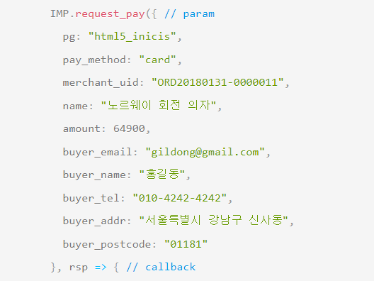 const {success, error_msg, imp_uid, merchant_uid, pay_method, paid_amount, status} = response;