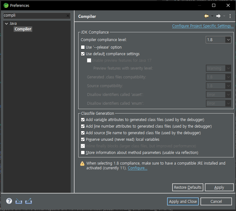 그리고 버전을 1.8로 해주면 끝!